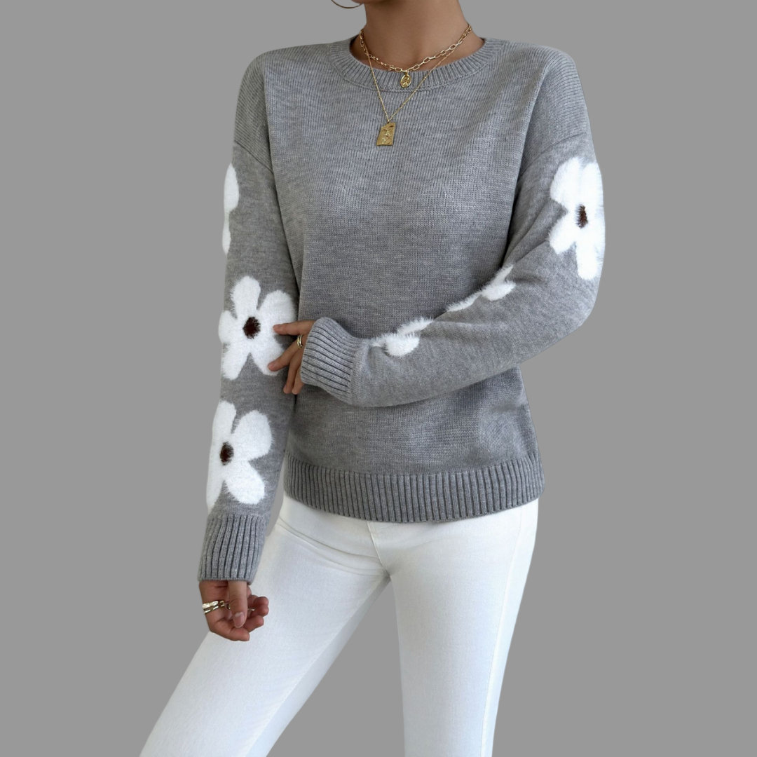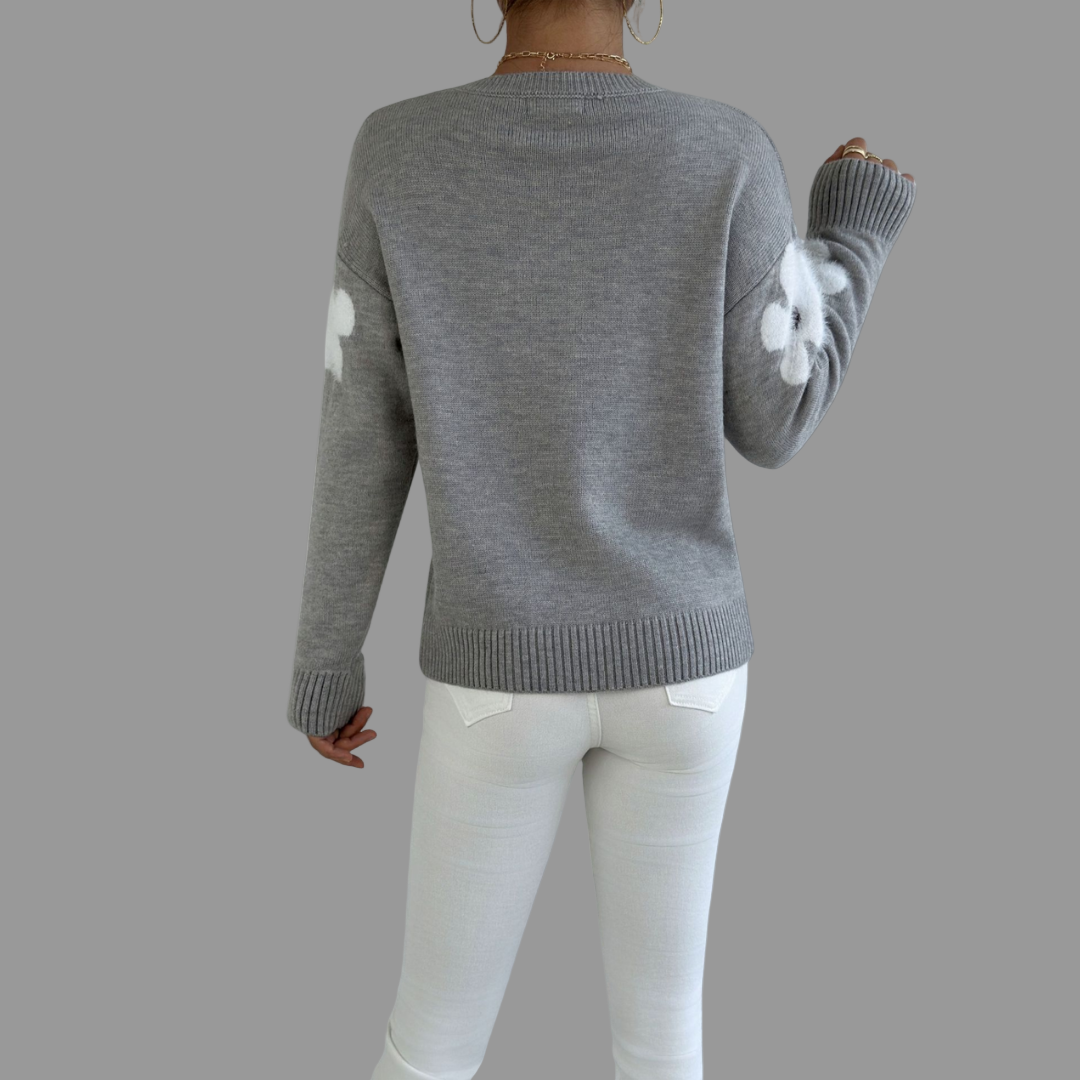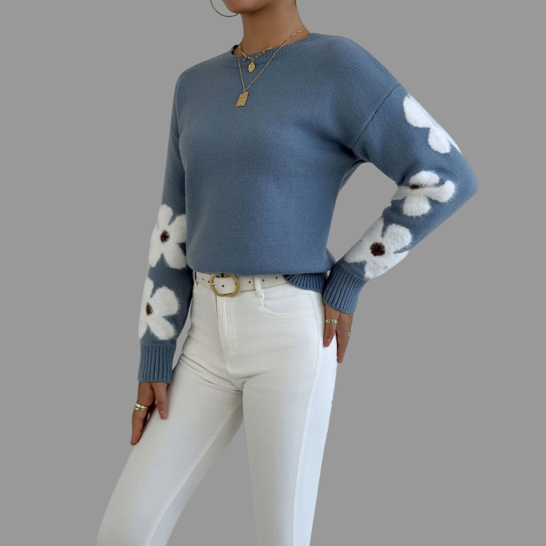 The Alison Sweater brings a fresh, feminine touch to your wardrobe with its soft knit texture and delicate floral detailing along the sleeves. Designed with a relaxed fit and gentle tummy coverage, it flatters your figure while keeping you effortlessly comfortable. Perfect for both casual days and elegant moments, Alison combines warmth, style, and a hint of playfulness — your new go-to piece for any season.
