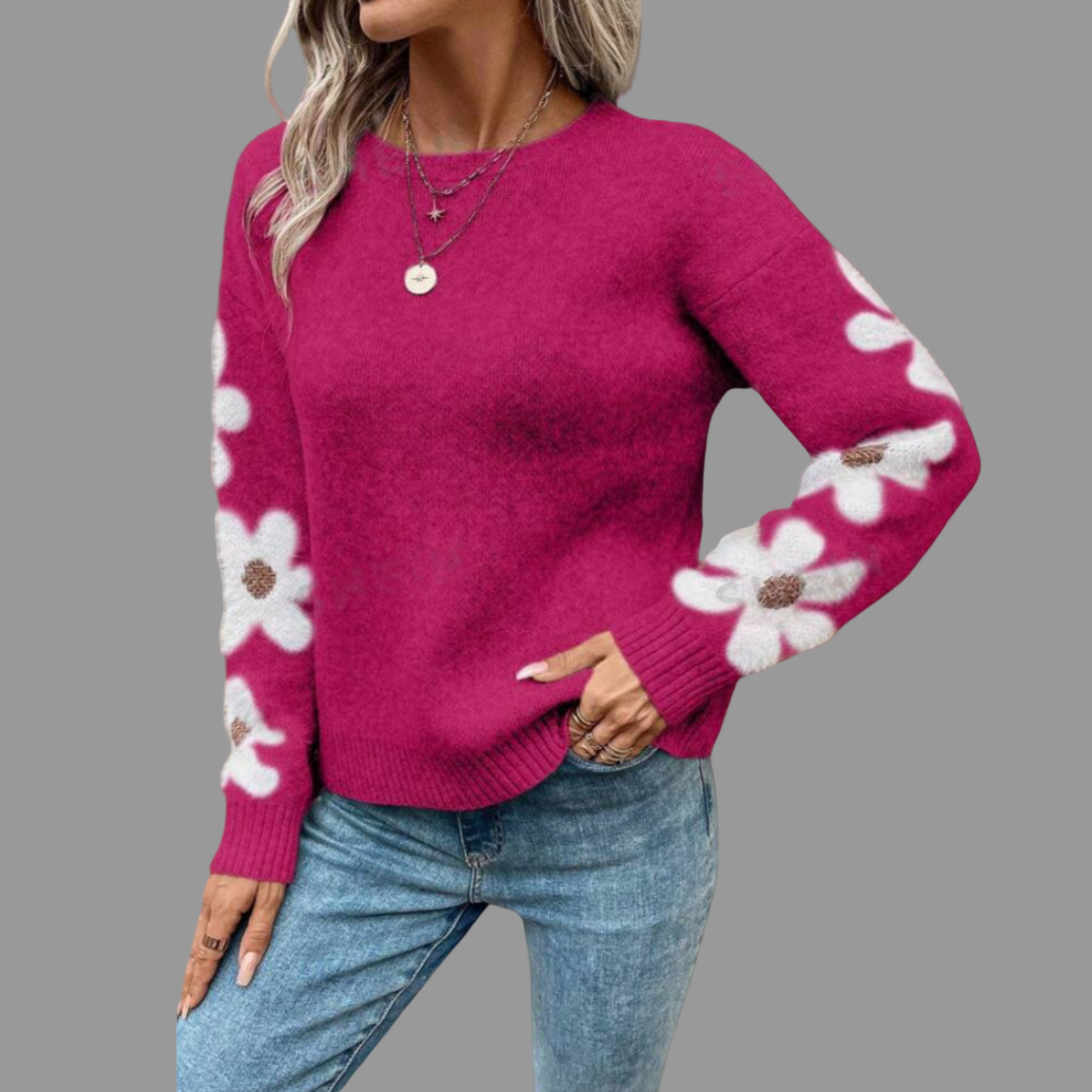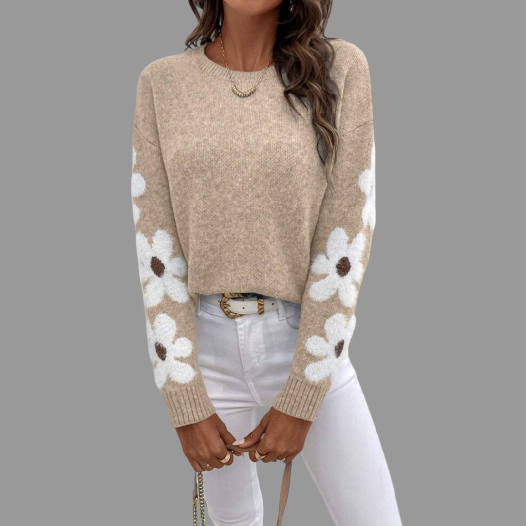 ALISON | ELEGANT FLORAL KNIT SWEATER WITH TUMMY COVERAGE